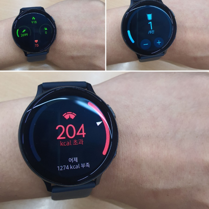 그리고 물 마신거 체크 하는것도 다이어트 할때 정말 중요합니다. 비단 운동으로만 하지 않고 식단 조절을 하면서 하기에 수분이 부족하면 변비에 걸리기 쉽상이기 때문이죠. 그런데 핸드폰 어플로 들어가서 저 물 마신 잔 수를 체크 하는건 왜그리도 귀찮은지.. 하지만 갤럭시 워치 액티브2 로 수시로 체크해주면 하루 최소 2L 이상을 의식하면서 마시게 되더라고요.