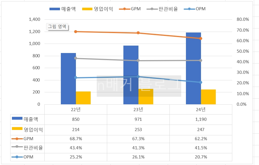 | 매출액 | 842 | 970 | 1,192 | 22.80% |