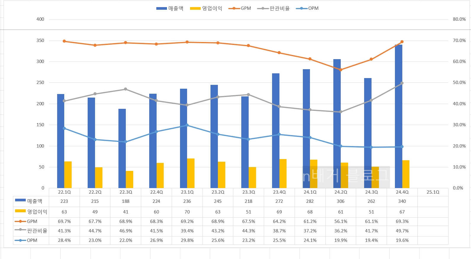 - 242Q부터 GPM의 급상승 이 보이고, 매출원가의 효율적인 관리 모습을 보인다.