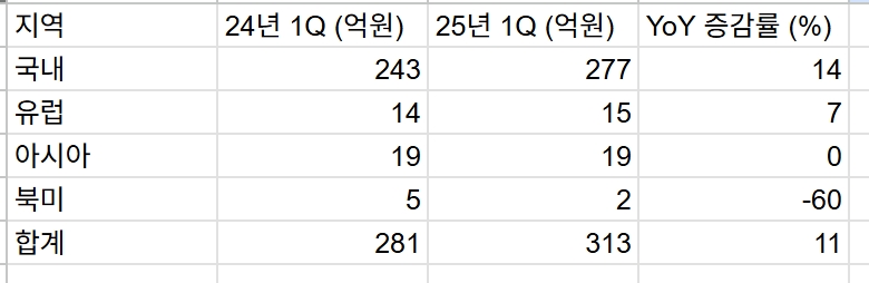 3. 25년 1Q 재무요약표