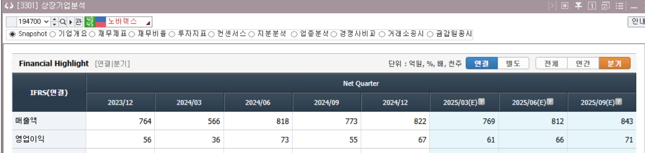 | 노바렉스 (194700) 2025년 1분기 실적 정밀 분석 및 주가전망 (10) | 2025.05.14 |