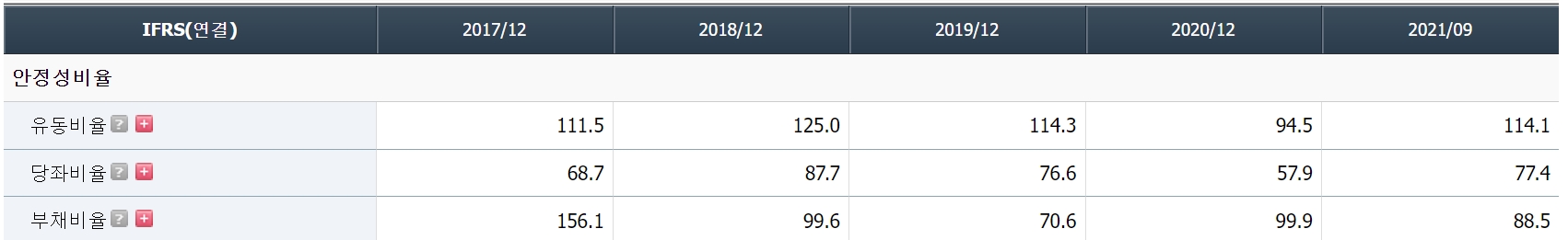 투자하기 안전한가? Yes, 유동비율 100% 이상이고, 부채비율도 적당하다.