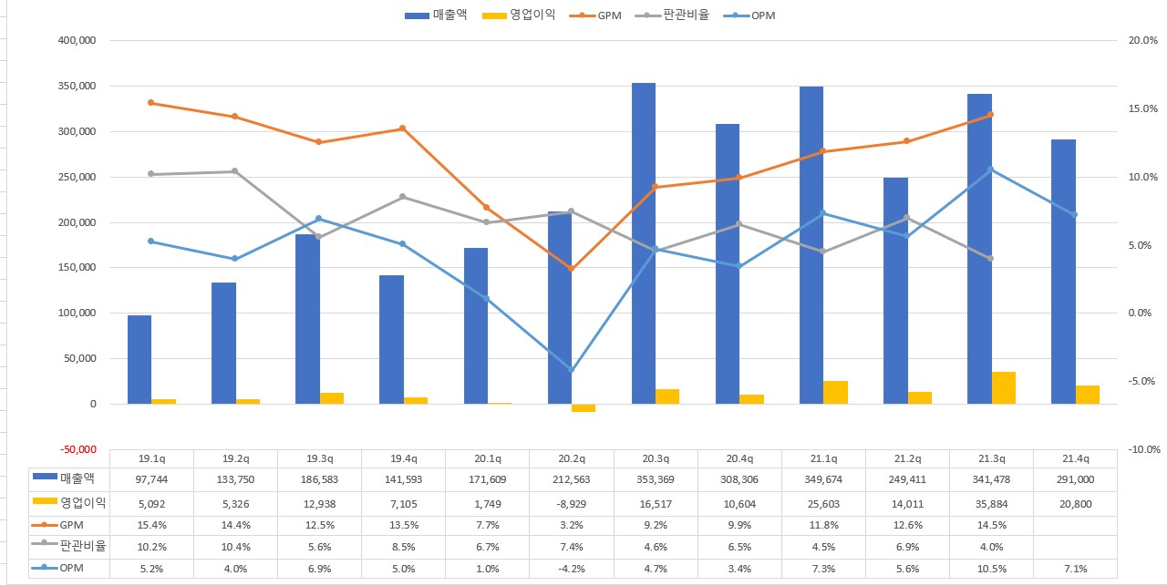 (21년 4분기 잠정실적 발표로 21.4Q에 매출/영익/OPM 까지는 추가 하였다.)
