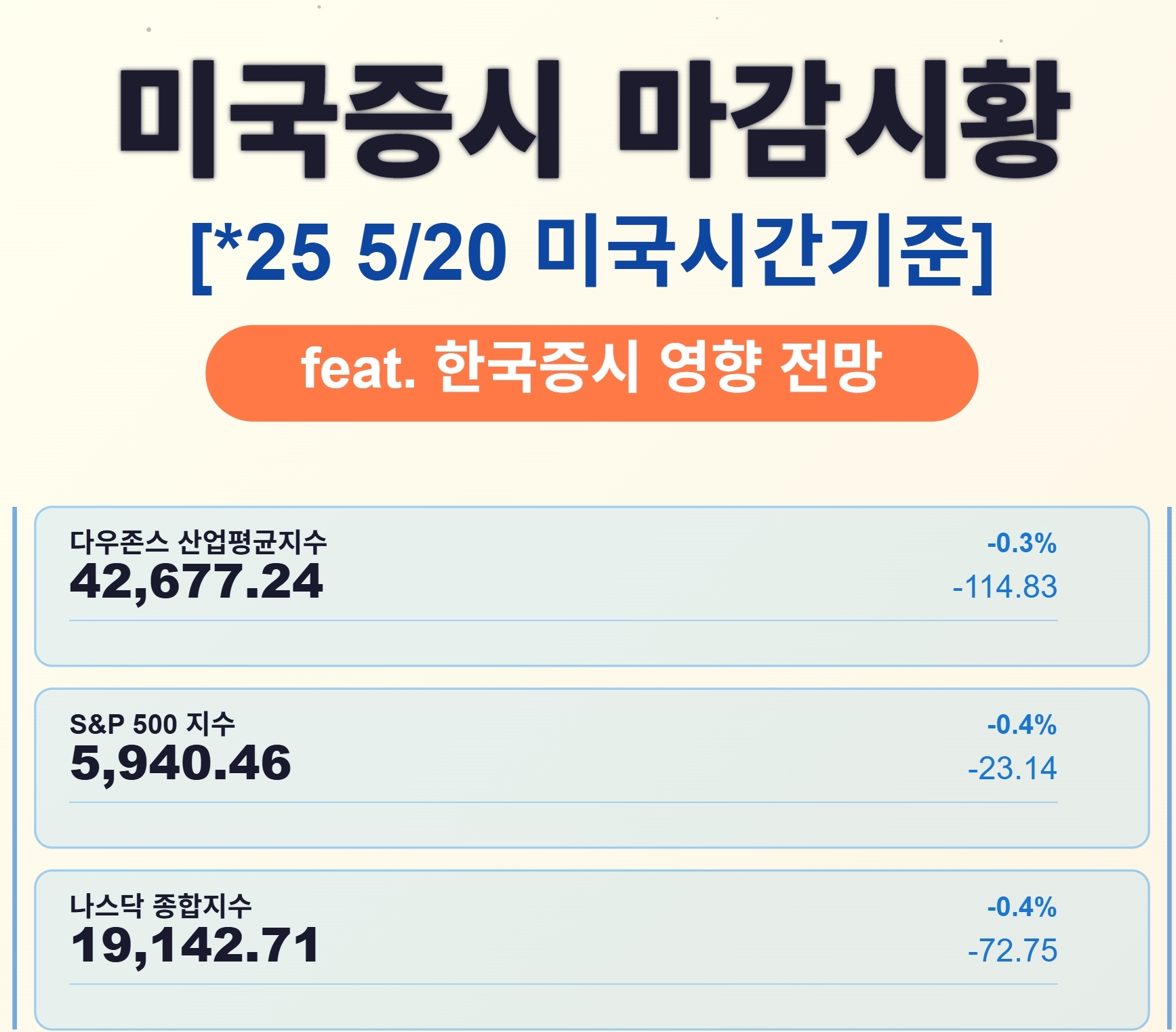 | 미국증시 마감시황 [*25 5/19미국시간기준](feat. 한국증시 영향 전망) (9) | 2025.05.20 |