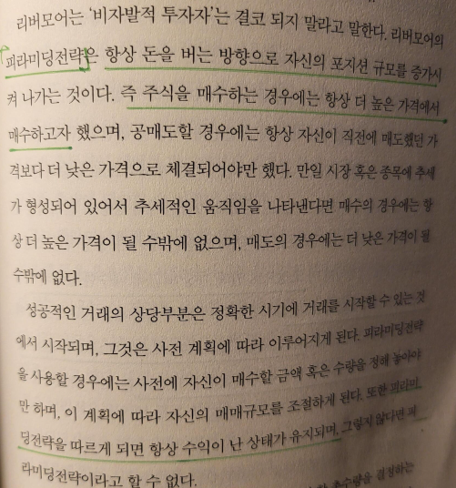 p211 에서 "피라미딩전략" 즉 불타기 전략으로 만 해야 하는 이유가 추가로 나온다.