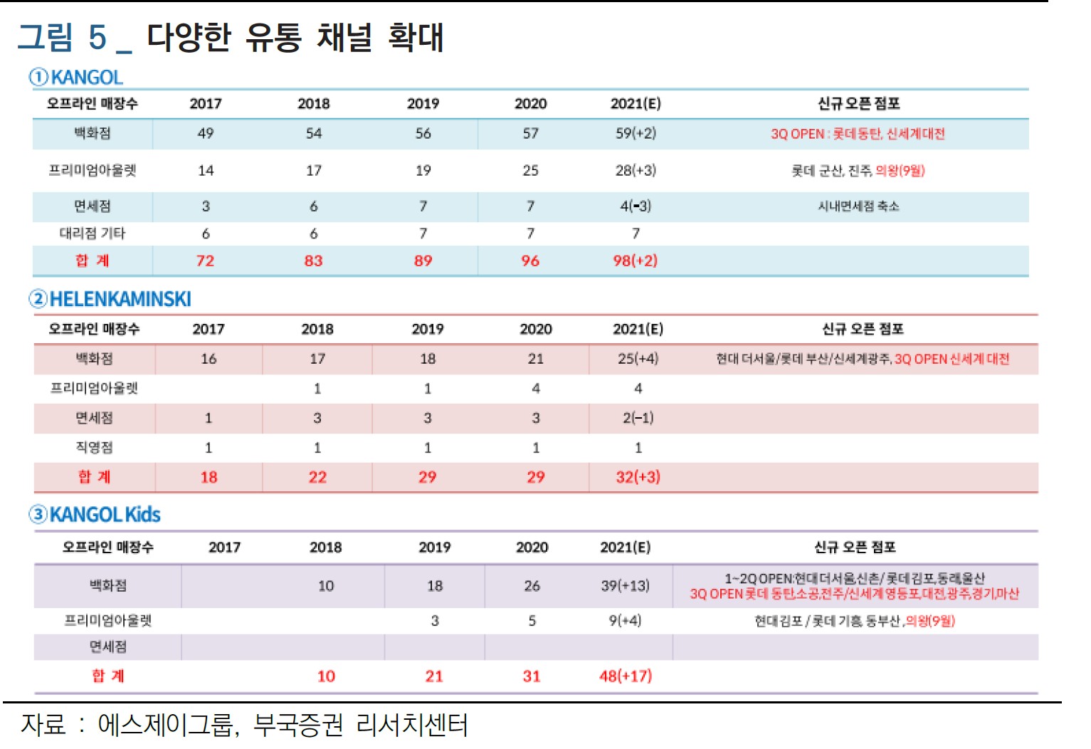 20년 4Q를 기준으로 헬렌카민스키 와 캉골키즈의 판매 점유율이 점점 높아 지는것을 확인 가능.