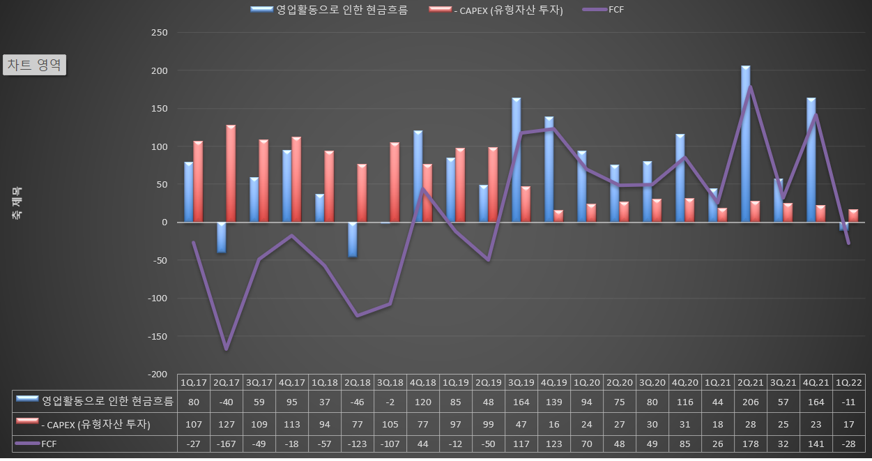 영업활동현금흐름 적전, FCF 동반 적전.