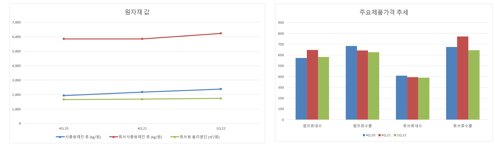 하지만 오른쪽 표에서 각 제품별 22.1Q의 가격을 보면 내수건 수출이건 판가전이를 시키지 못하고, 심지어 유지도 못하고