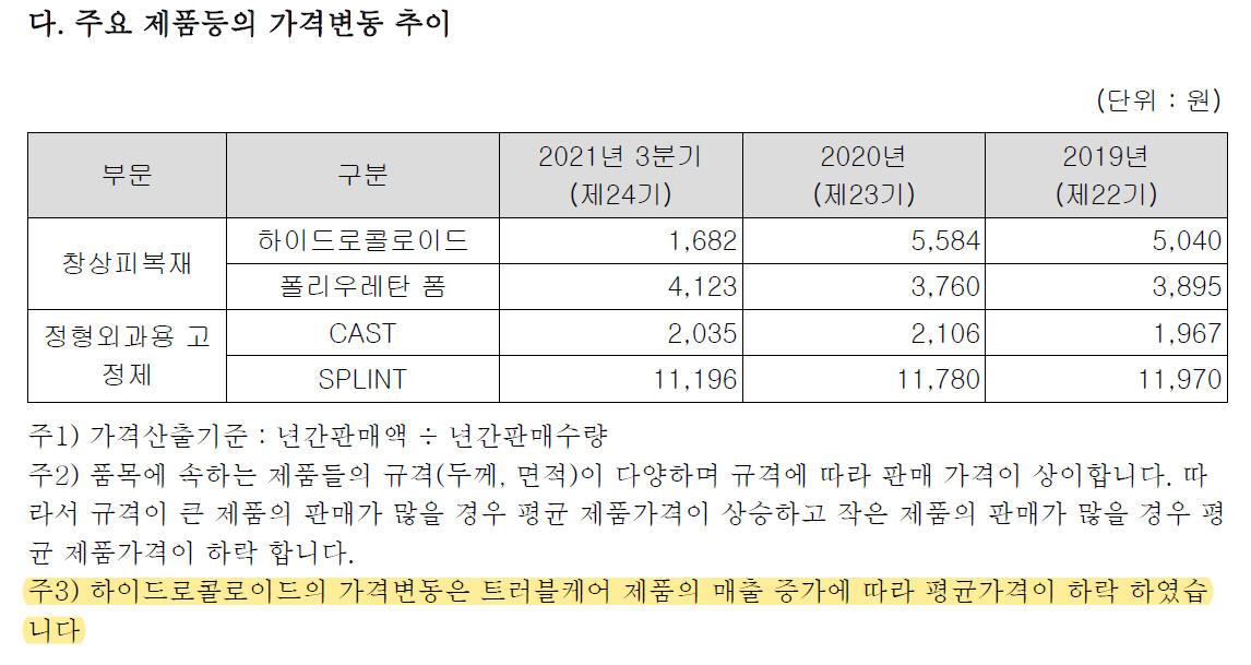 창상피복재 의 매출이 대부분이며, 그중에서도 하이드로콜로이드 가 50% 이상을 차지 하고 있다.