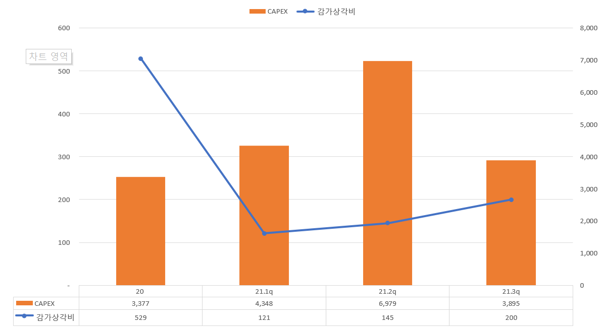 이에 따라 감가 상각비도 현재 올라가고 있고, 공장의 완공 및 가동 시점이 내년 3월 전후라고 하니 당분간 감가 상각비는 지속 증가 하는 모습을 보여 줄 것이다.