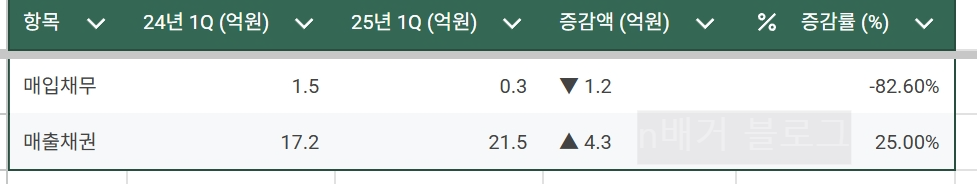 - QoQ 로는 10억정도 줄었지만, 2024.1Q 와 비교하면 19.5억 증가한 50.1 억원으로 1분기 수주잔고가 나타나고 있다.