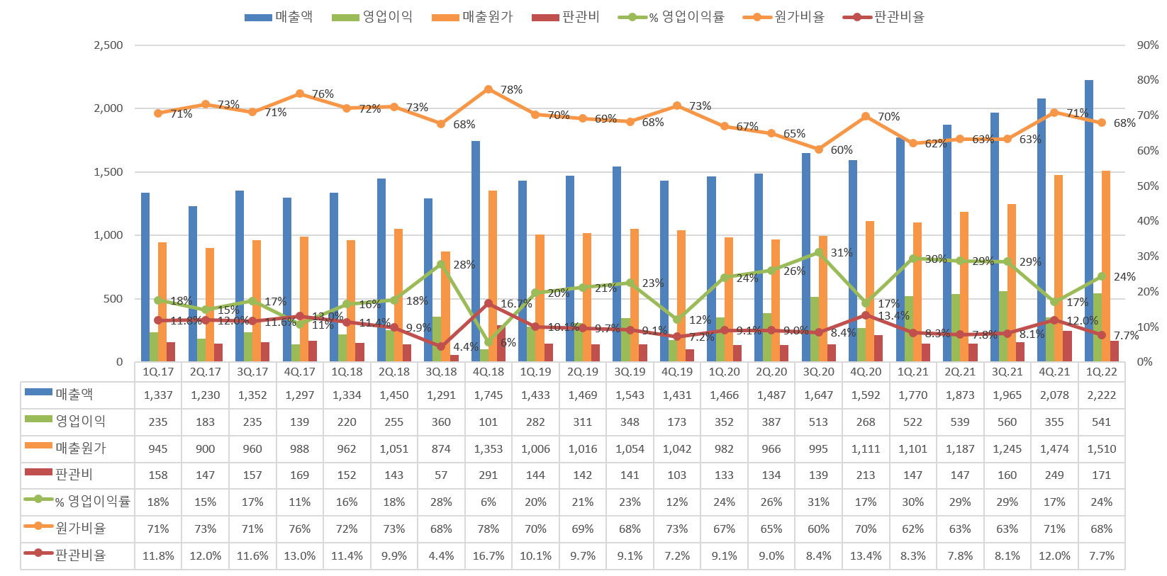 다만 판관비율을 다시 8% 대로 낮추면서 안정적인 모습을 보여주고 있다.