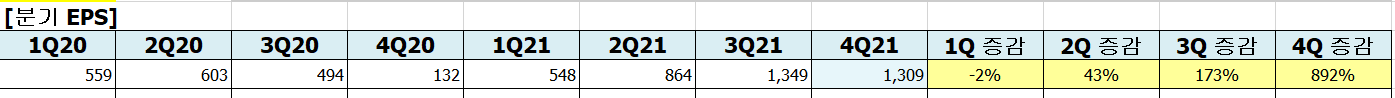 22년 예상 YoY 성장률 : 매출액 17.4% / 영업이익 34.9% / EPS 27.4%