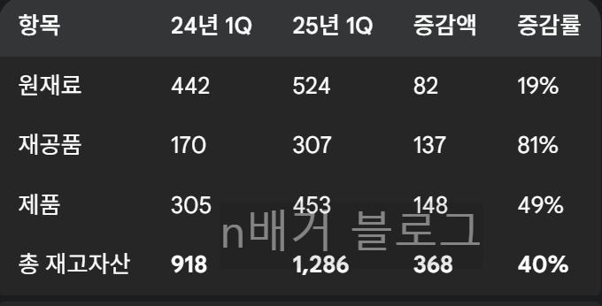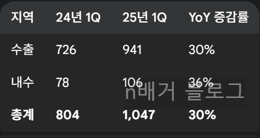 | 항목 | 24년 1Q | 25년 1Q | 증감액 | 증감률 |