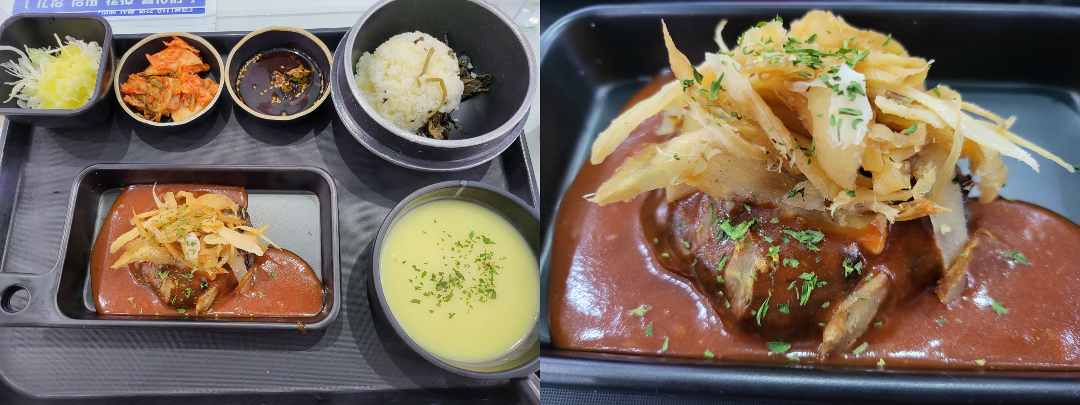 참고 사항으로 횡성휴게소(강릉방향) 에서 다른 음식들은 이른 시간에도 판매 하는거 같은데, 이 횡성한우 떡더덕스테이크 메뉴는 8시30분이 넘어서도 자판기에 Sold Out 이라고 되어 있어서 직접 코너에 가서 물어보니, 뭐 스프도 끓여야 하고 등등 9시 좀 넘어야 시작한다고 한다. 이 메뉴 꼭 드시고 싶으신 분은 오전 9시 이후에 맛볼수 있다는점 참고 하면 되겠다.