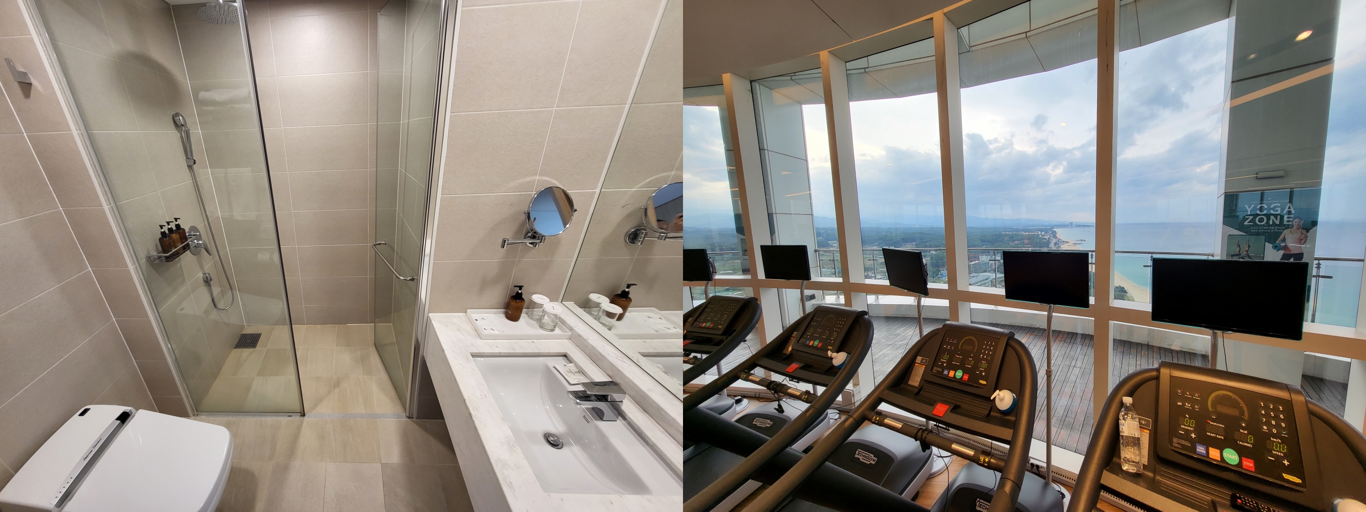 22층이었나 헬스장 있다. 스카이베이호텔경포 에 투숙 하신다면 꼭 이용하길 추천한다. 깨끗하고 런닝머신 뛰면서 바라보는 바깥 바다뷰 풍경이 죽여준다.