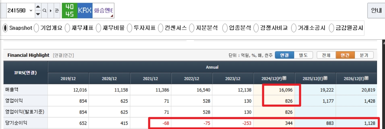 2024년의 실적이 1회성이 아님을 알 수 있도록 2026년의 컨센서스를 보면, 매출이 19,032억원 (Y0Y 18% 성장) 영업이익이 1177억으로 (YoY 38% 성장) 으로 예상이 되고 있다.