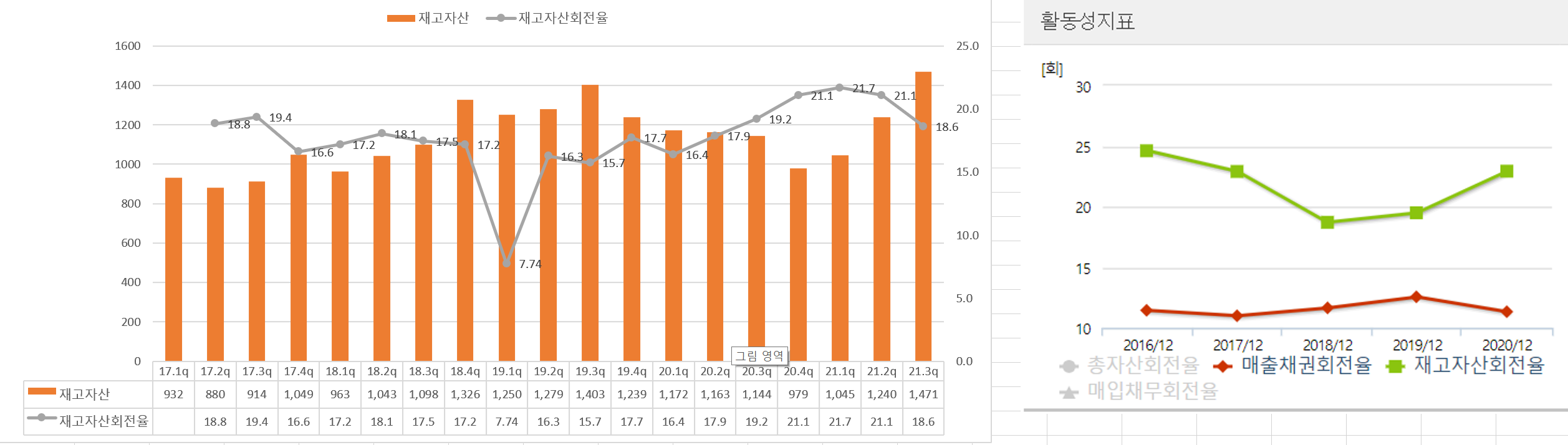 매출채권 회전율은 박스권에서 잘 유지 되고 있다.