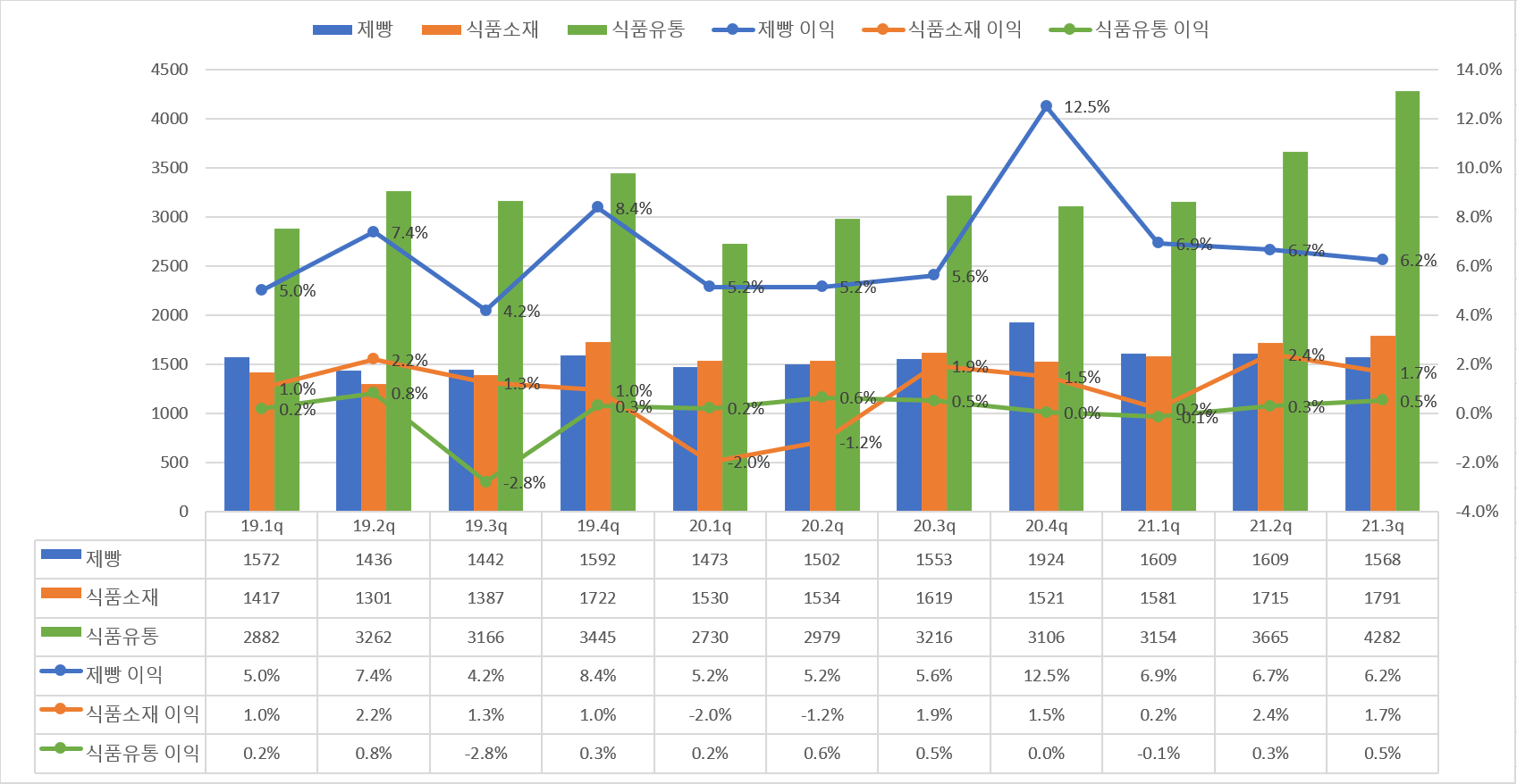 영업이익률 OPM이 박하다 박해. 4분기에 호빵이 많이 팔려서 그런가 확실히 4분기가 계절성 영향으로