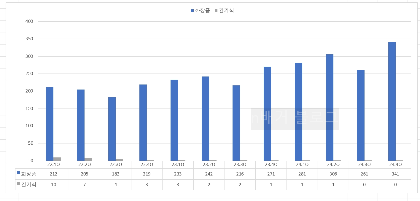 건기식 제품군이 존재하지만, 사실상 그냥 화장품 원툴 회사라고 보는게 맞다. 24년 기준 화장품 비중 99%