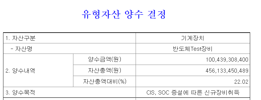 자체 제품을 생산 후 판매 하는 기업이 아닌, 고객단 으로의 오더 계획에 따른 테스트 기업인 만큼, 증설의 의미는 고객단의 요청으로 유추해볼 수 있다.