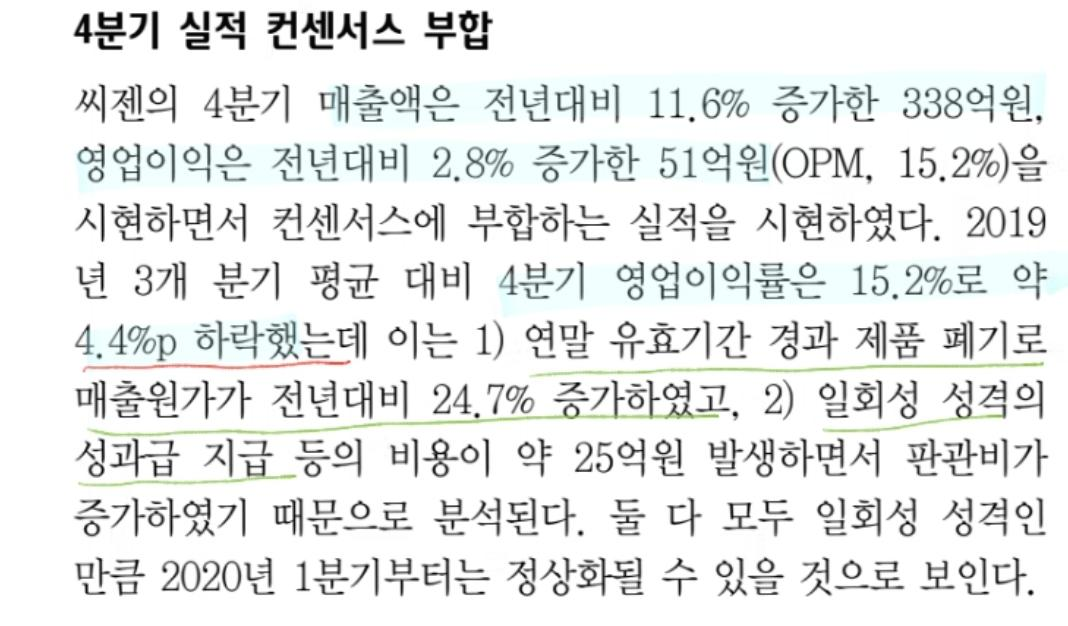 4분기에는 컨센에 부합하는 실적을 내긴 했지만 모든 제조업이 그러하듯 유효기간 경과 재고 폐기 및 성과급 등으로 4분기 실적은 그닥 좋지 않았다고 볼 수 있다.