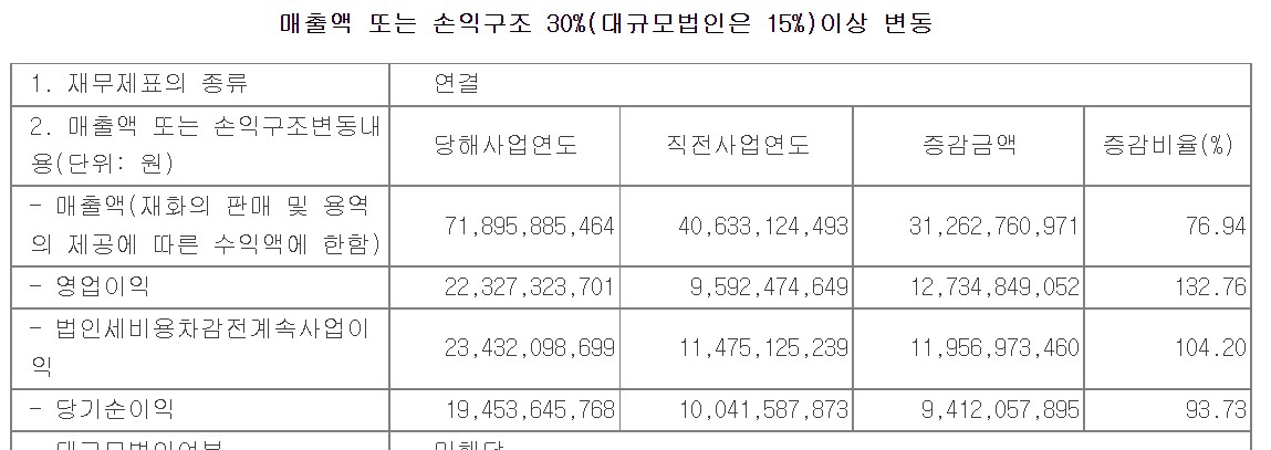 상세 내용은 3월말 정식 사업보고서 나오면 체크 해와야 것다.