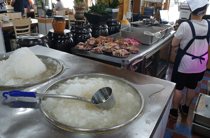 위 사진과 같이 식당에 들어서면 바로 볼수 있는 동치미 모습이다. 정말 이거 꼭 두번 마셔야 한다.