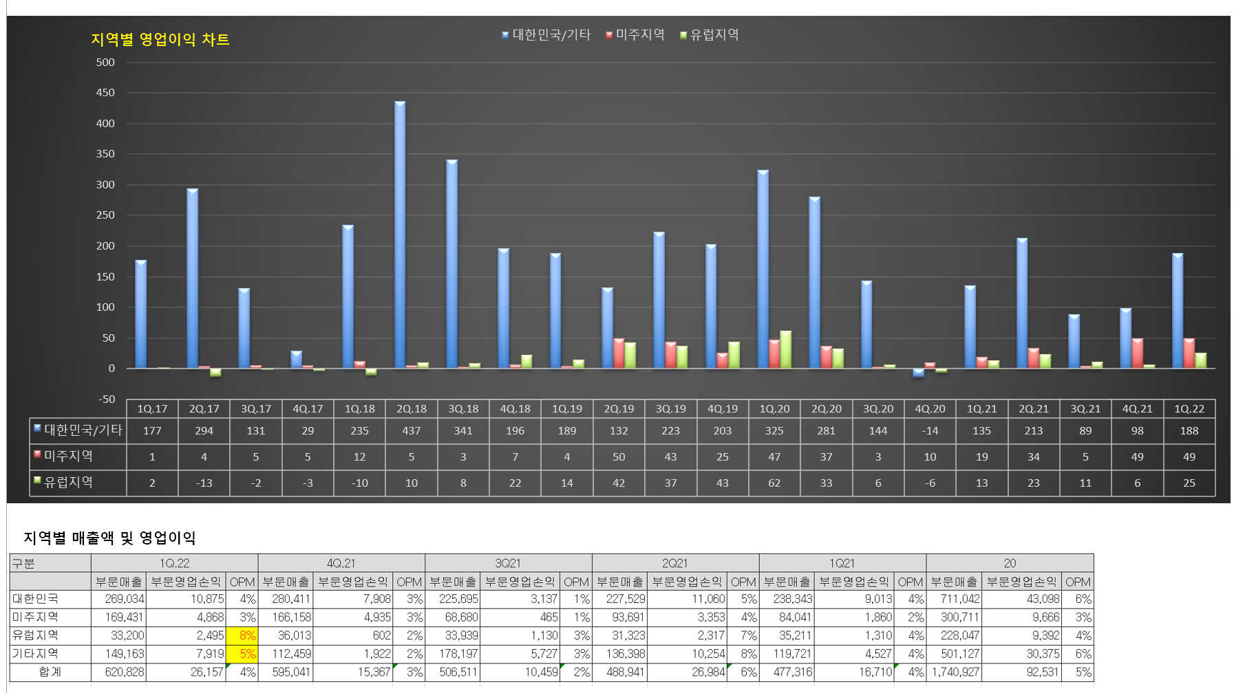 특히 유럽지역은 8% OPM 달성으로 예전 이익률을 다 회복한 것으로 보인다.